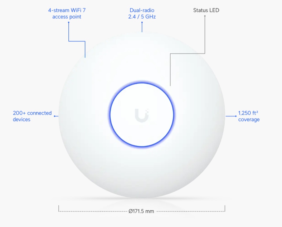 L'U7-Lite è un AP WiFi 7 dotato di tecnologia WiFi 7, dispone di due radio con 4 flussi spaziali, che gli consentono di raggiungere velocità di trasmissione fino a 4.6 Gbps. Questo lo rende ideale per supportare anche le applicazioni indoor. Con un'area di copertura di 115 m² e il supporto di oltre 200 dispositivi connessi, l'U7-Lite è una soluzione ideale per un'ampia gamma di applicazioni.