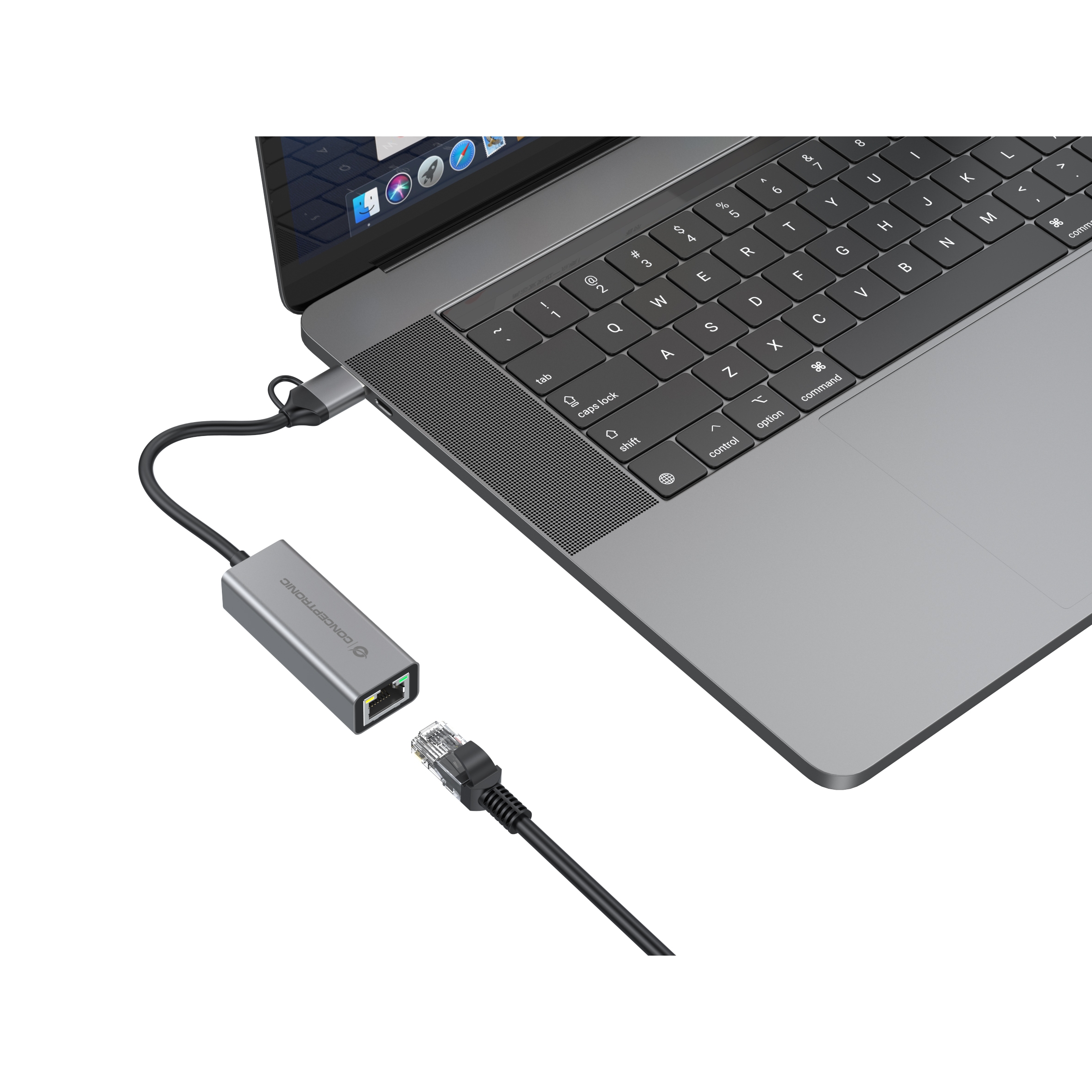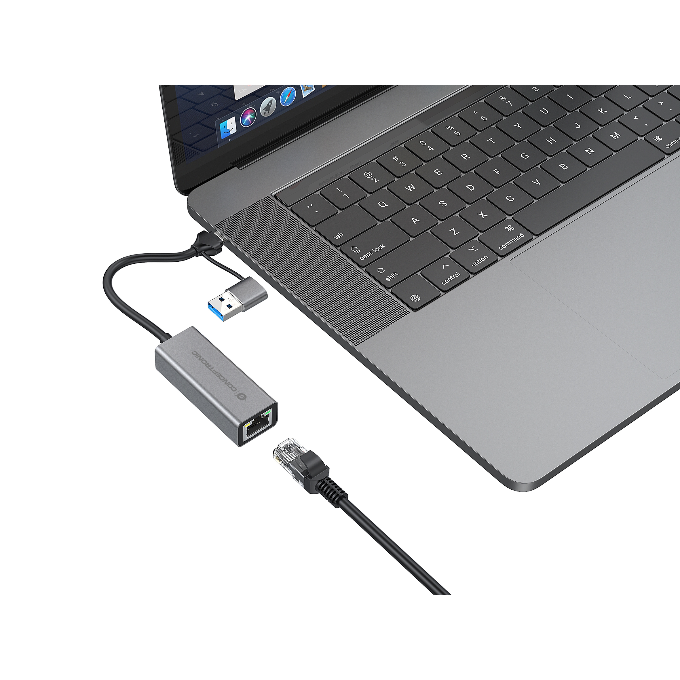 Conceptronic ABBY08G, Cablato, USB Type-A/USB Type-C, Ethernet, 5000 Mbit/s, Grigio