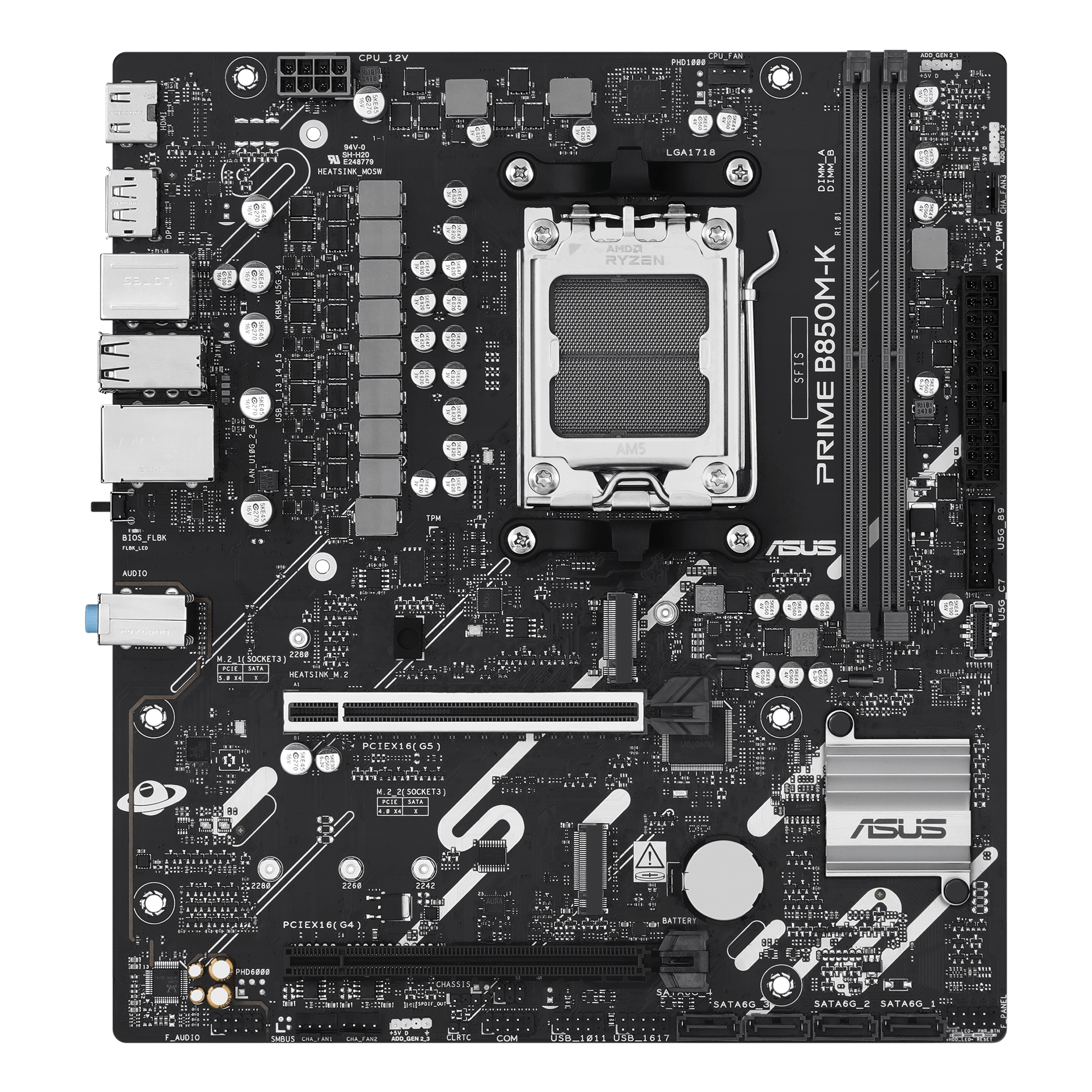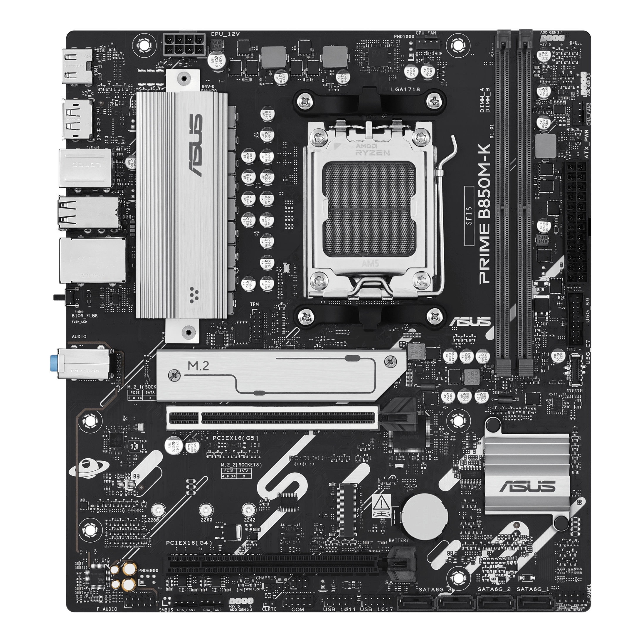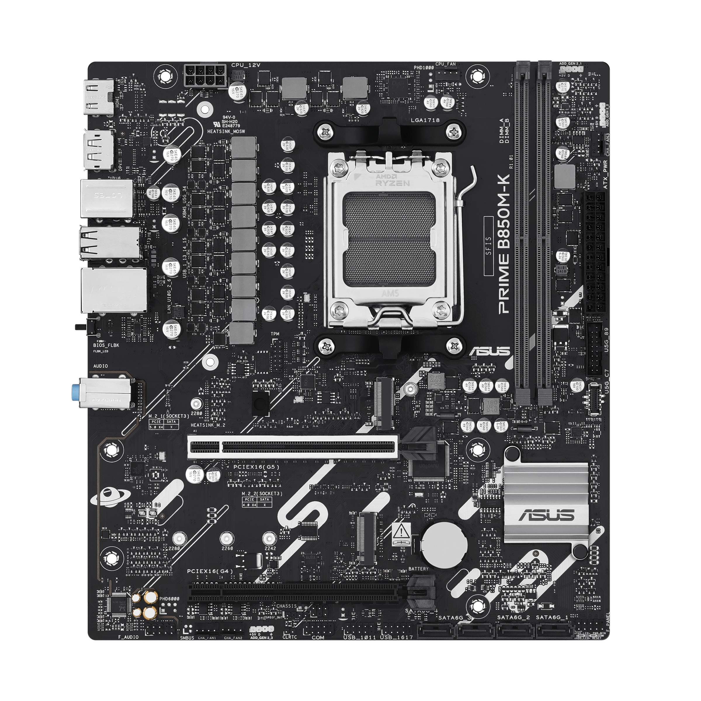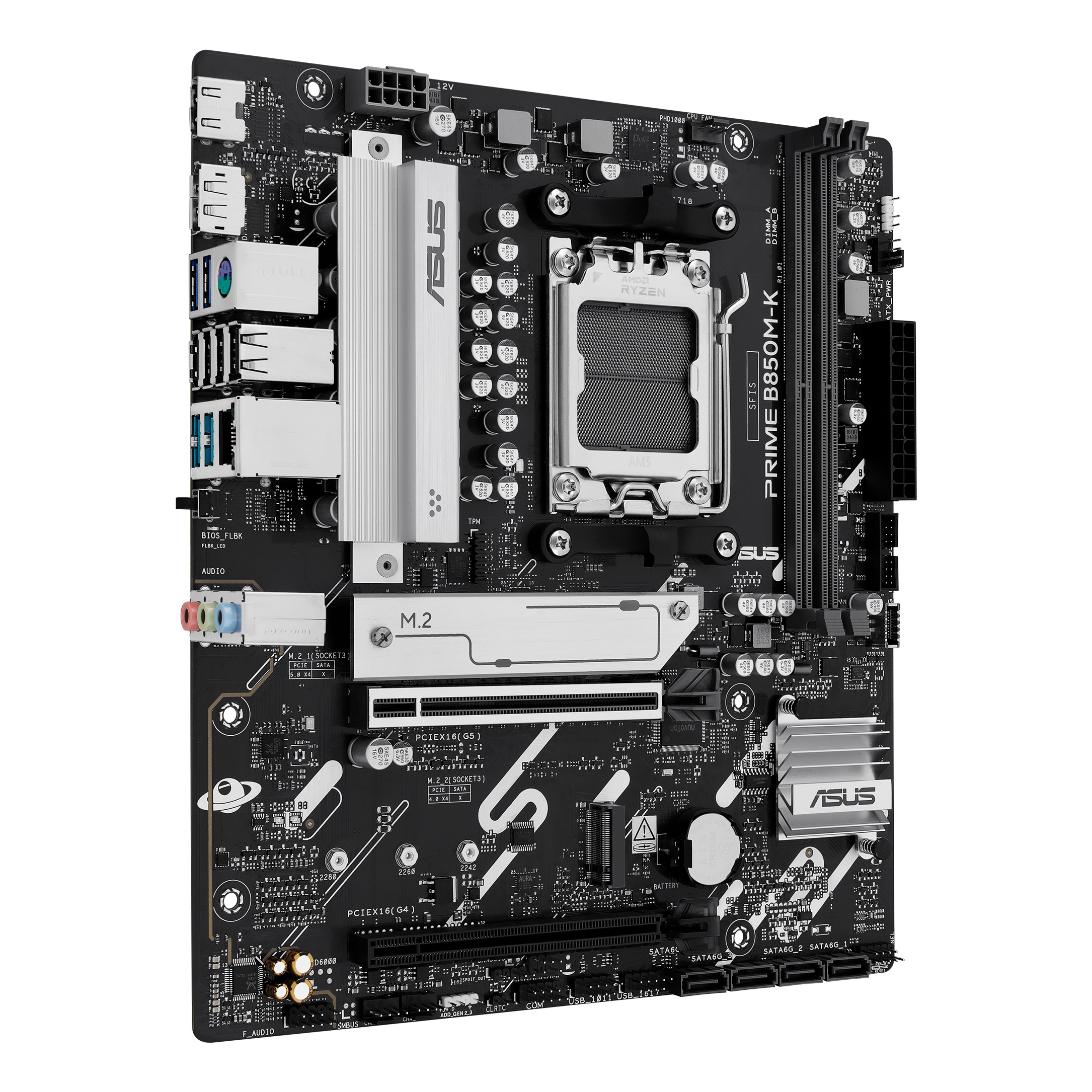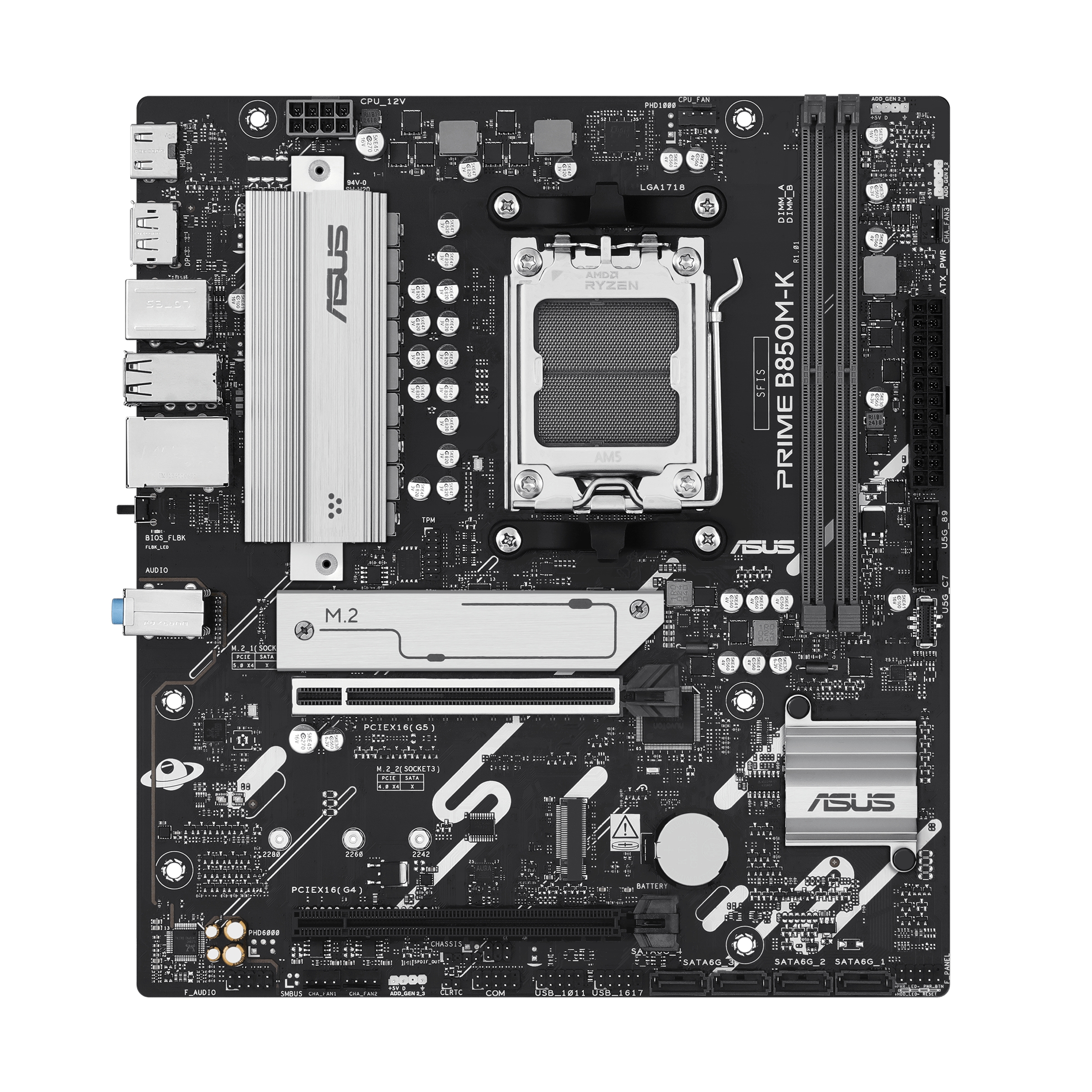 ASUS PRIME B850M-K, AMD, Socket AM5, AMD Ryzen 7000 Series, AMD Ryzen 8000 Series, AMD Ryzen 9000 Series, Socket AM5, DDR5-SDRAM, 128 GB