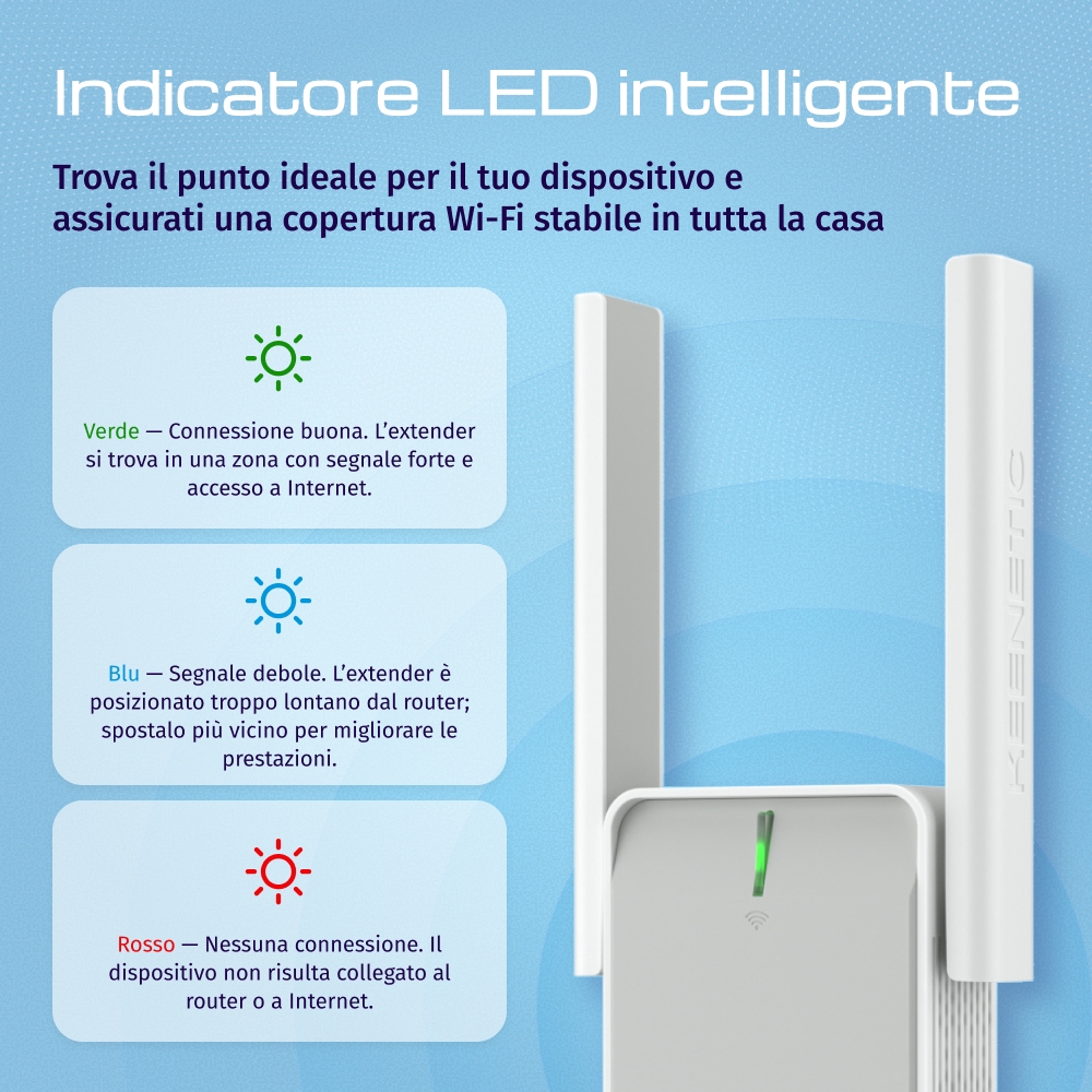 Keenetic Buddy 4 Range Extender Wi-Fi N300 con funzionalità Mesh e porta Fast Ethernet. Tipo: Ripetitore di rete, Velocità di trasferimento dati: 300 Mbit/s, Velocità trasferimento Ethernet LAN: 100 Mbit/s. Tipo di antenna: Esterno. Tecnologia di cablaggio: 10/100Base-T(X), Standard di rete: IEEE 802.11n, IEEE 802.11k, IEEE 802.11r, IEEE 802.11v, Standard Wi-Fi: Wi-Fi 4 (802.11n). Colore del prodotto: Bianco, Grigio. Caratteristiche IPv4 e IPv6: IPv6 SSH, IPv6 Telnet