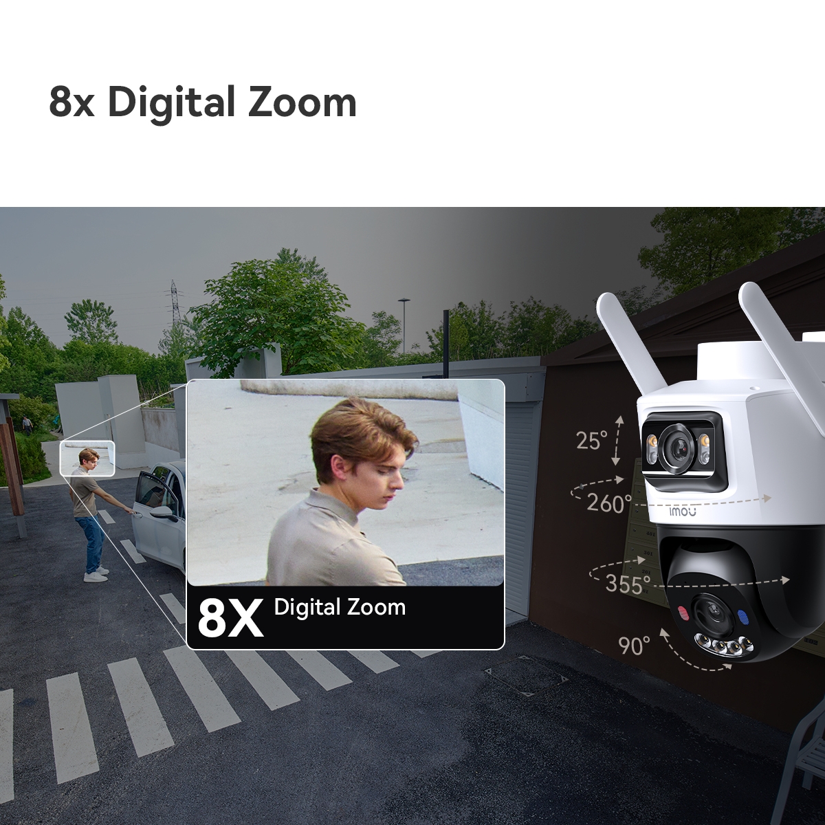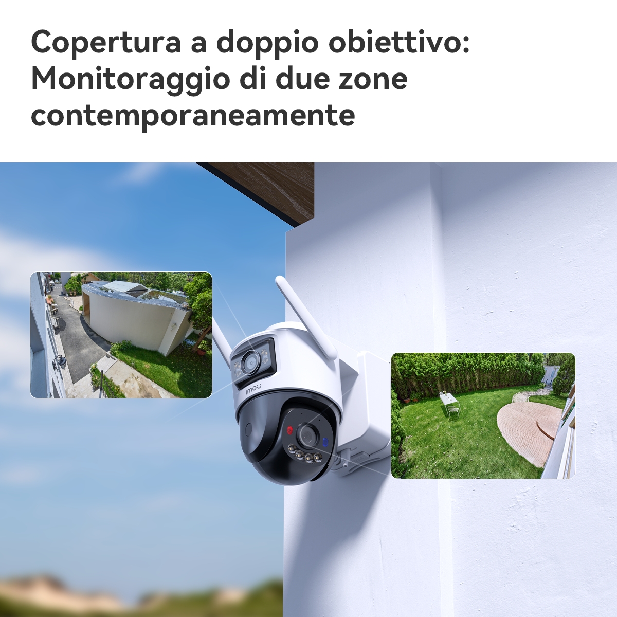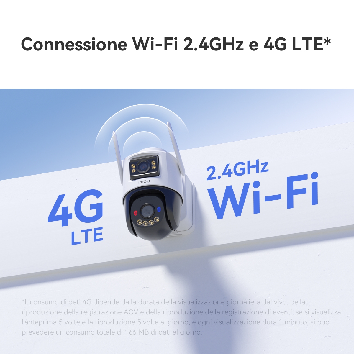 Imou AOV Dual KIT Telecamera da esterno, motorizzata, 4G e Wi-Fi a batteria. Tipo: Telecamera di sicurezza IP, Posizionamento supportato: Esterno, Tecnologia di connessione: Wireless. Tipo di montaggio: Parete, Colore del prodotto: Nero, Bianco, Fattore di forma: Torretta. Angolo di visione dell'obiettivo, orizzontale: 76°, Angolo di visione dell'obiettivo, verticale: 41°, Angolo di visione dell'obiettivo, diagonale: 91°. Tipo sensore: CMOS, Dimensioni sensore ottico: 25,4 / 3 mm (1 / 3"). Zoom digitale: 8x, Lunghezza focale fissa: 3,6 mm