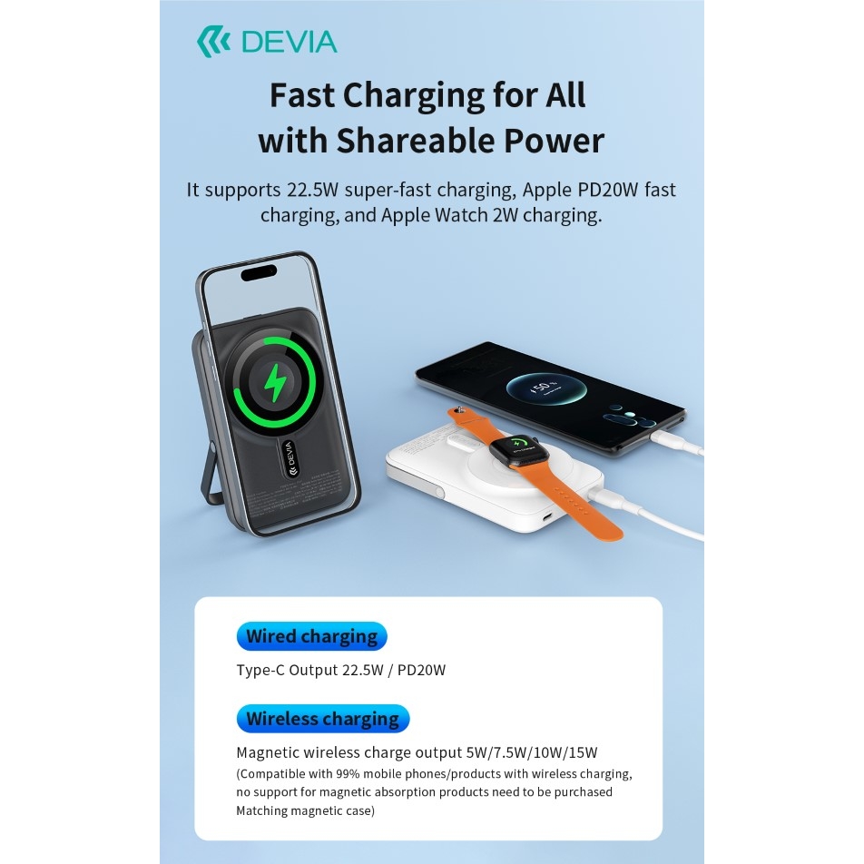 compatto, pratico e potente, il power bank magnetico devia unisce design intelligente, prestazioni elevate e massima comodità.
