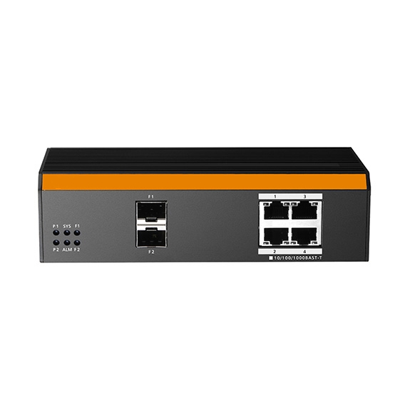 switch industriale gigabit poe con 4 porte gigabit poe e 2 porte gigabit sfp.