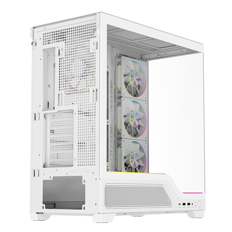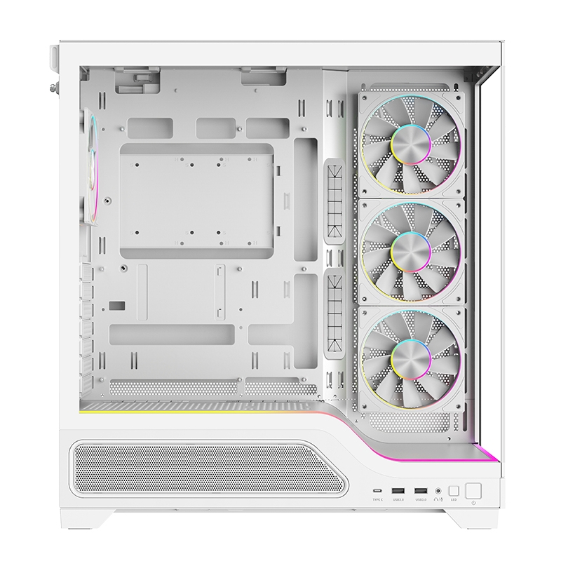 Case showbui wave 82w gaming tower atx 4x12cm argb fan 2xusb3 type-c darker temp glass side fron