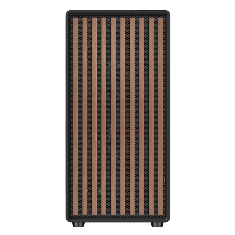 Case woody w2b - gaming tower- atx- 4x14cm black fan- 2xusb3- type-c- wood front- darker temp glass side panel