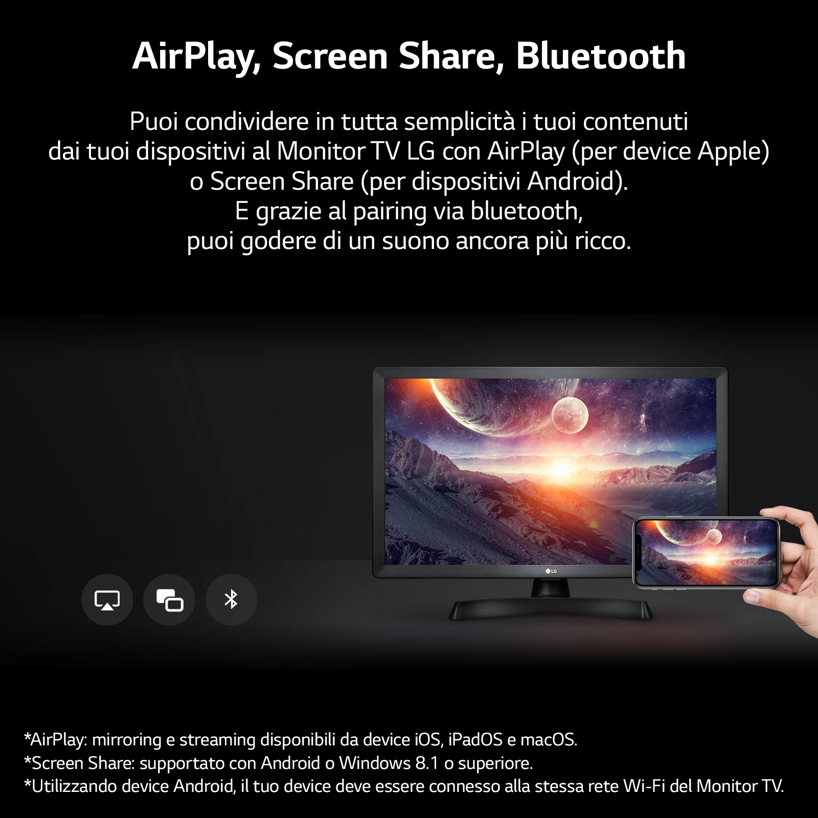 LG 24TQ520S Monitor TV 24" smart webOS 22 Wi-Fi NOVITÀ 2022 Nero, 59,9 cm (23.6"), 1366 x 768 Pixel, LED, Smart TV, Wi-Fi, Nero