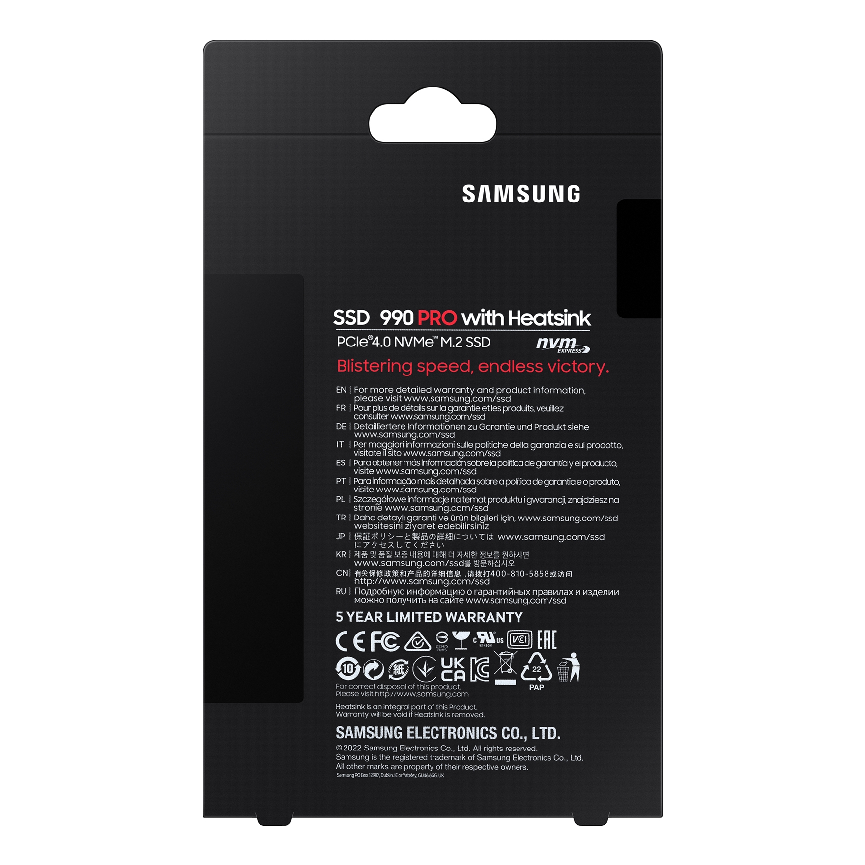 Samsung 990 PRO NVMe con Dissipatore di calore, SSD interno. Capacità SSD: 1 TB, Dimensione SSD: M.2, Velocità di lettura: 7450 MB/s, Velocità di scrittura: 6900 MB/s, Componente per: PC