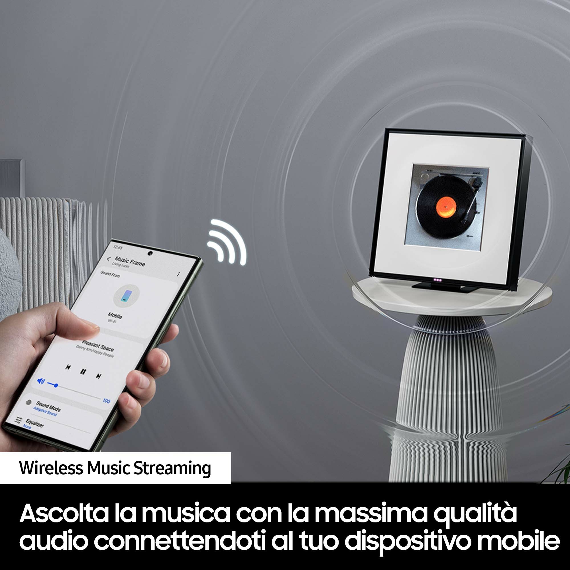 Samsung Music Frame Speaker HW-LS60D/ZF, Wireless Music Streaming, Dolby Atmos 3D, Frame Design con sfondo personalizzabile, Wide Sweet Spot, 2024, 2.0 canali, Dolby Atmos, Dolby Digital Plus, Adattivo, MUSICA, Standard, Nero, AAC, AIFF, ALAC, FLAC, MP3,